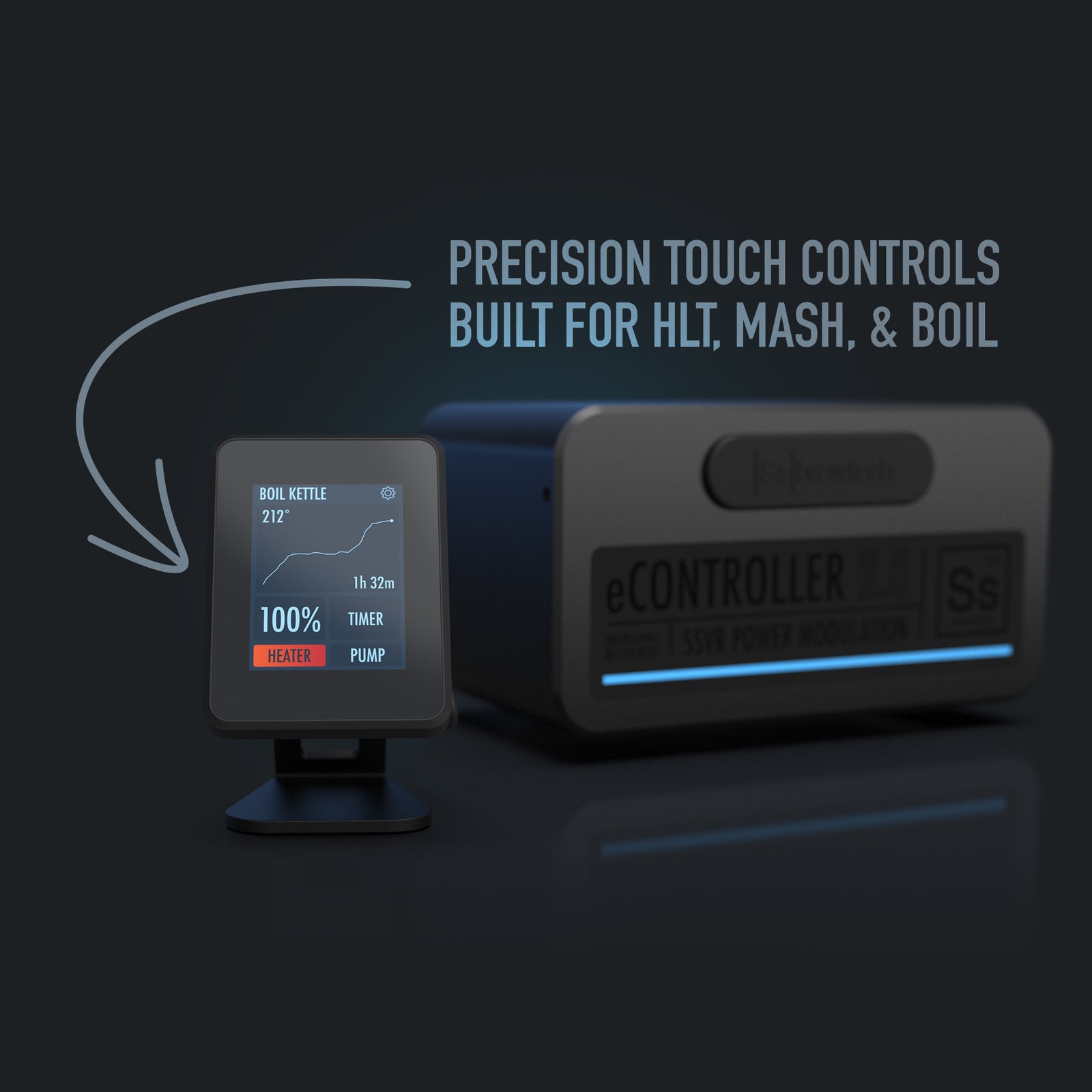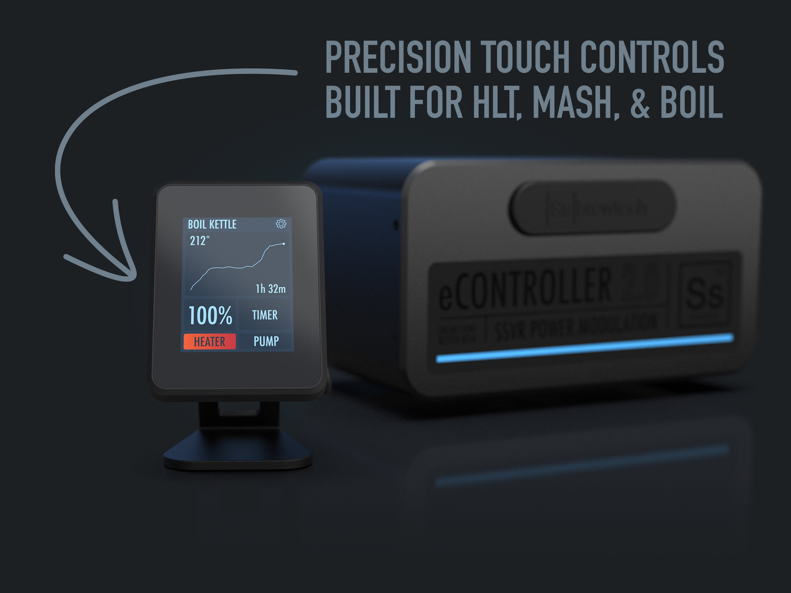 With the success of our Touch Screen Control Interface for FTSs Touch and SVBS, it seemed like a no-brainer to bring it to our eController 2.0. The Touch Screen houses the controls for an individual eKettle 2.0. With a Mash function powered by precise PID programming and a Boil function that allows the brewer to fine tune the element power, this new control interface packs a lot of power and is easy to use.