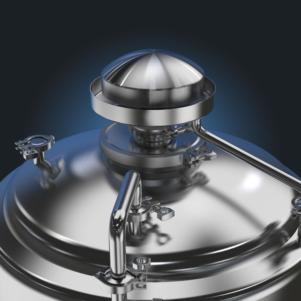 Instead of incorporating a cumbersome off-the-shelf manway, we took another cue from our Nano Jacketed Unitanks and Brite Tanks and incorporated a large TC Lid and our own proprietary TC lid cap and gasket system that prevents the gasket from inadvertently falling into the tank when removing the lid cap. When the HLT needs to be cleaned, you can simply remove the TC Condensate Lid, and replace it with our 3" CIP Sprayball.
