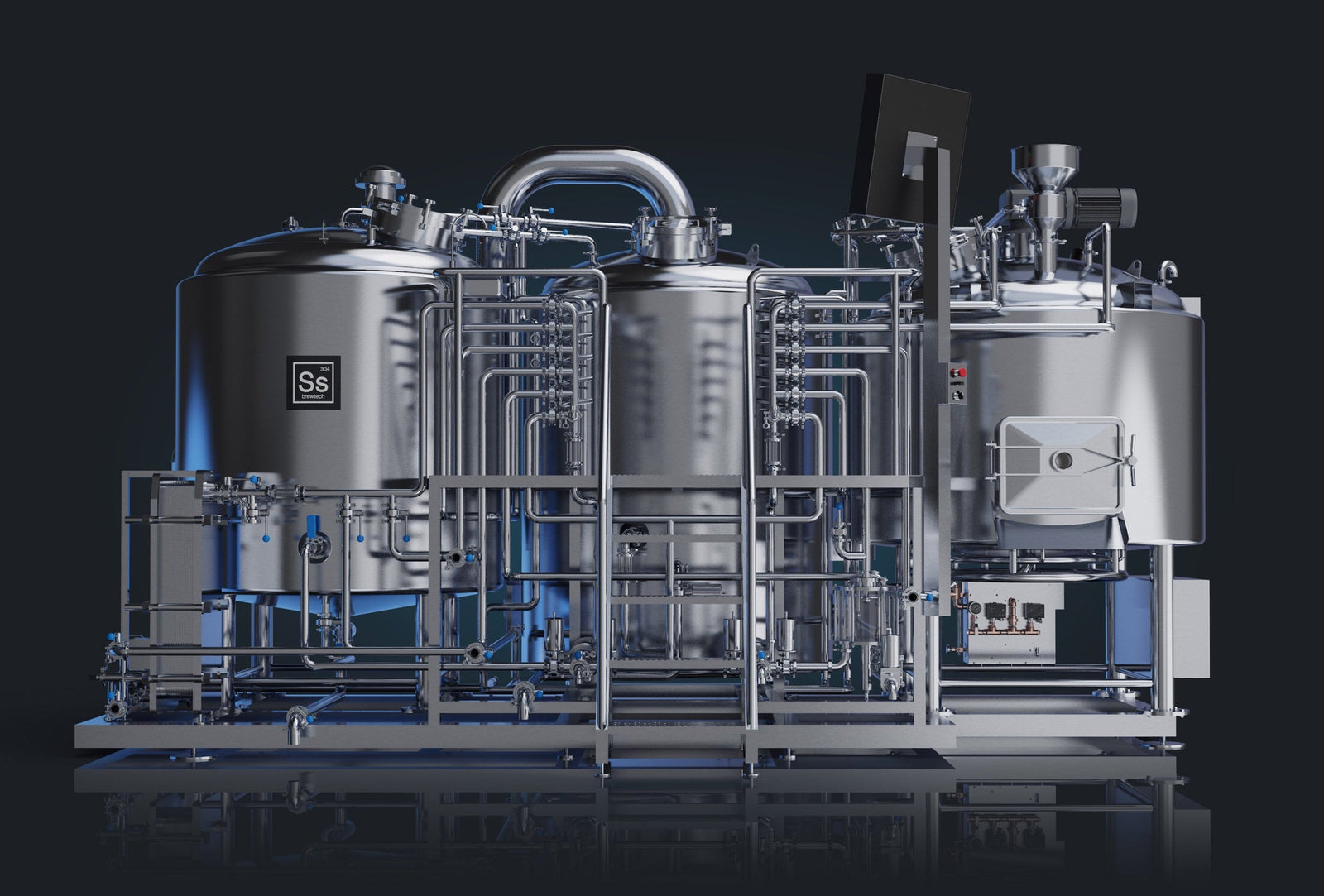 The Iconic Flagship Ss Brewhouses. Steam or Direct Fire. Features Patent Pending Valve Tree, Frame Mounted Design, Dual Pump Architecture, and much more.