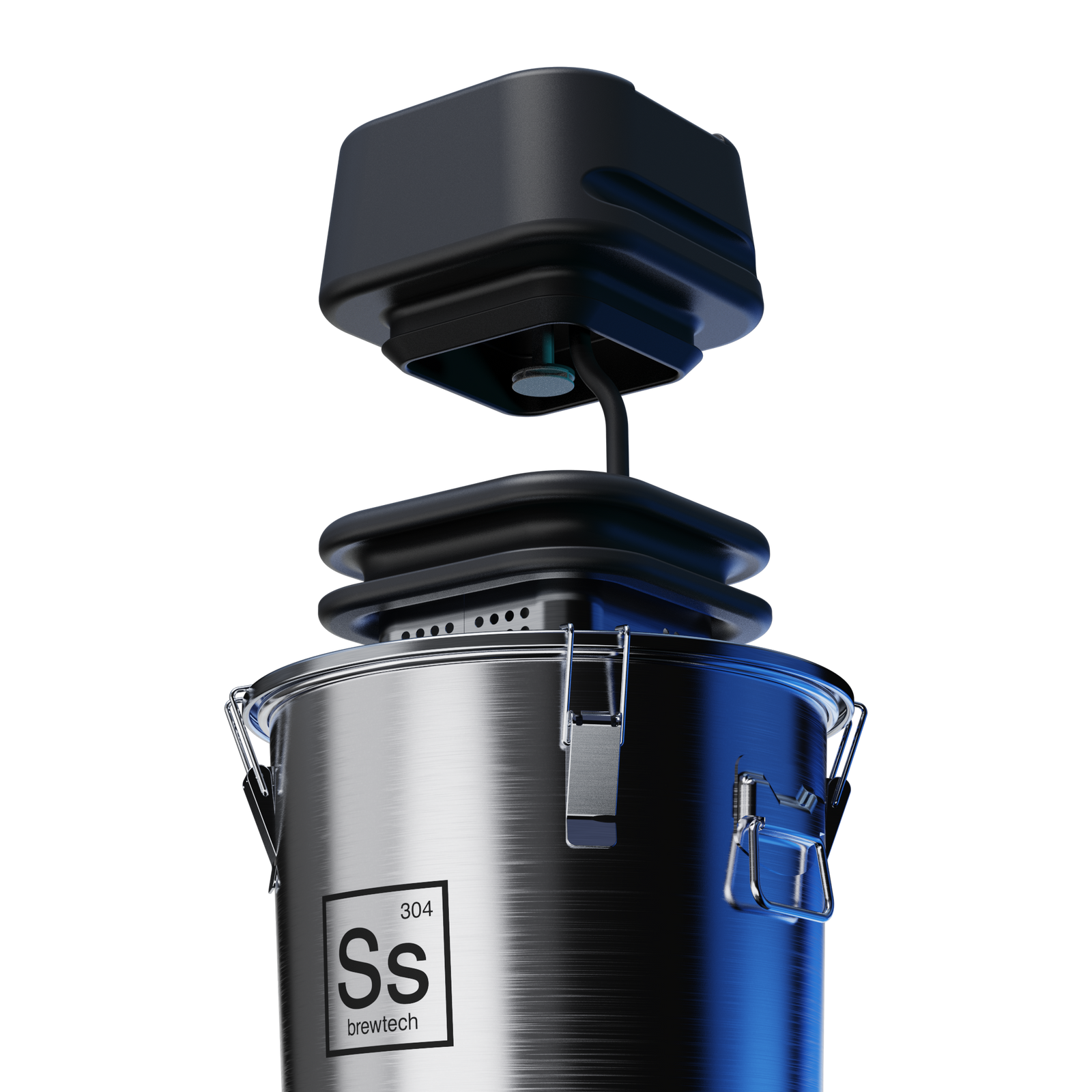 The Recirculation Module contains the controller, pump, and recirculation fittings and mounts conveniently onto the Perforated Basket and the Brew Bucket for a compact cold brew setup.