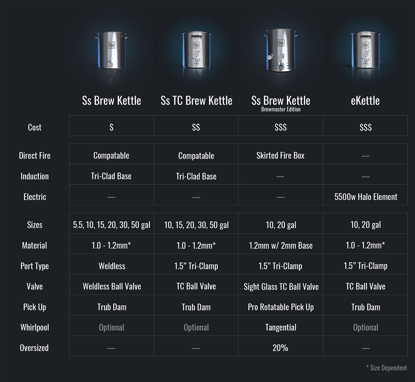 A quality 304 Stainless Brew Kettle can last a lifetime of home brewing. The Ss TC Brew Kettle is constructed from 304 stainless steel and features an aluminum core Tri-Clad bottom to foster even heating and minimize the risk of scorching and allow for the use of induction heating.